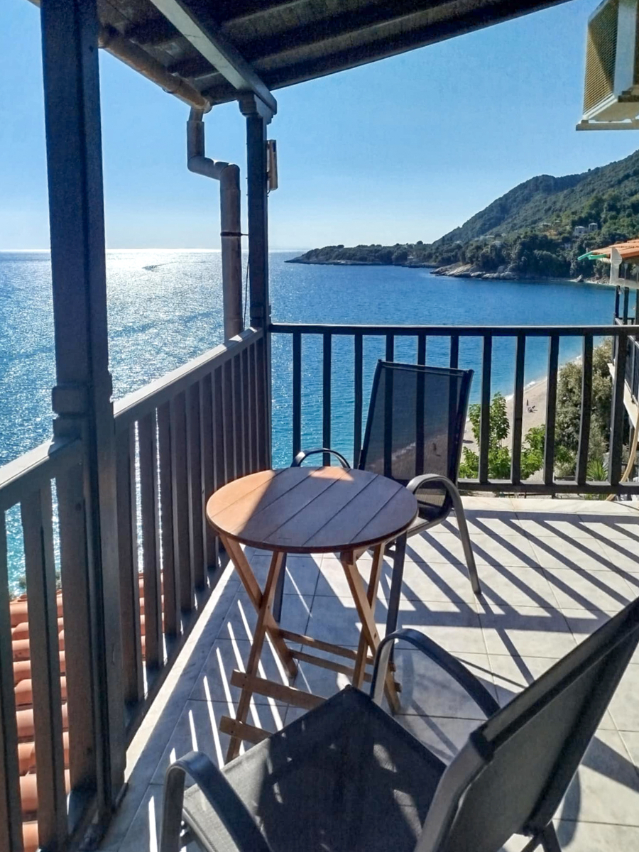 ‘Όλα τα είδη προσφέρονται σε πακέτο – takeaway ( καφέ, σνακ, αναψυκτικά, ποτά ) απολαύοντας τήν ηρεμία σας στο μπαλκόνι του διαμερίσματος σας με θέα το Αιγαίο.